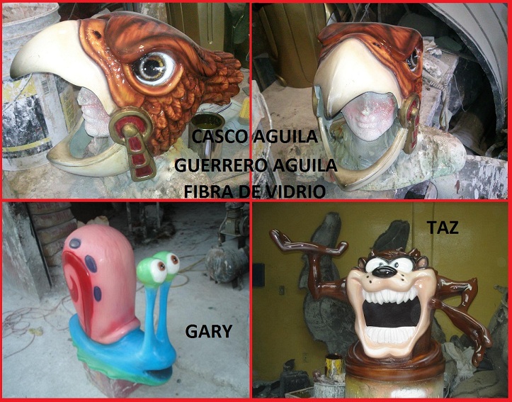 FIBRA DE VIDRIO Ofrecemos estatuas, personajes, trajes y un sin fin de objetos realizados a base de fibra de vidrio de altísima calidad. Compártenos tu idea y nosotros la desarrollamos. Te invitamos a conocer algunas de nuestras creaciones.